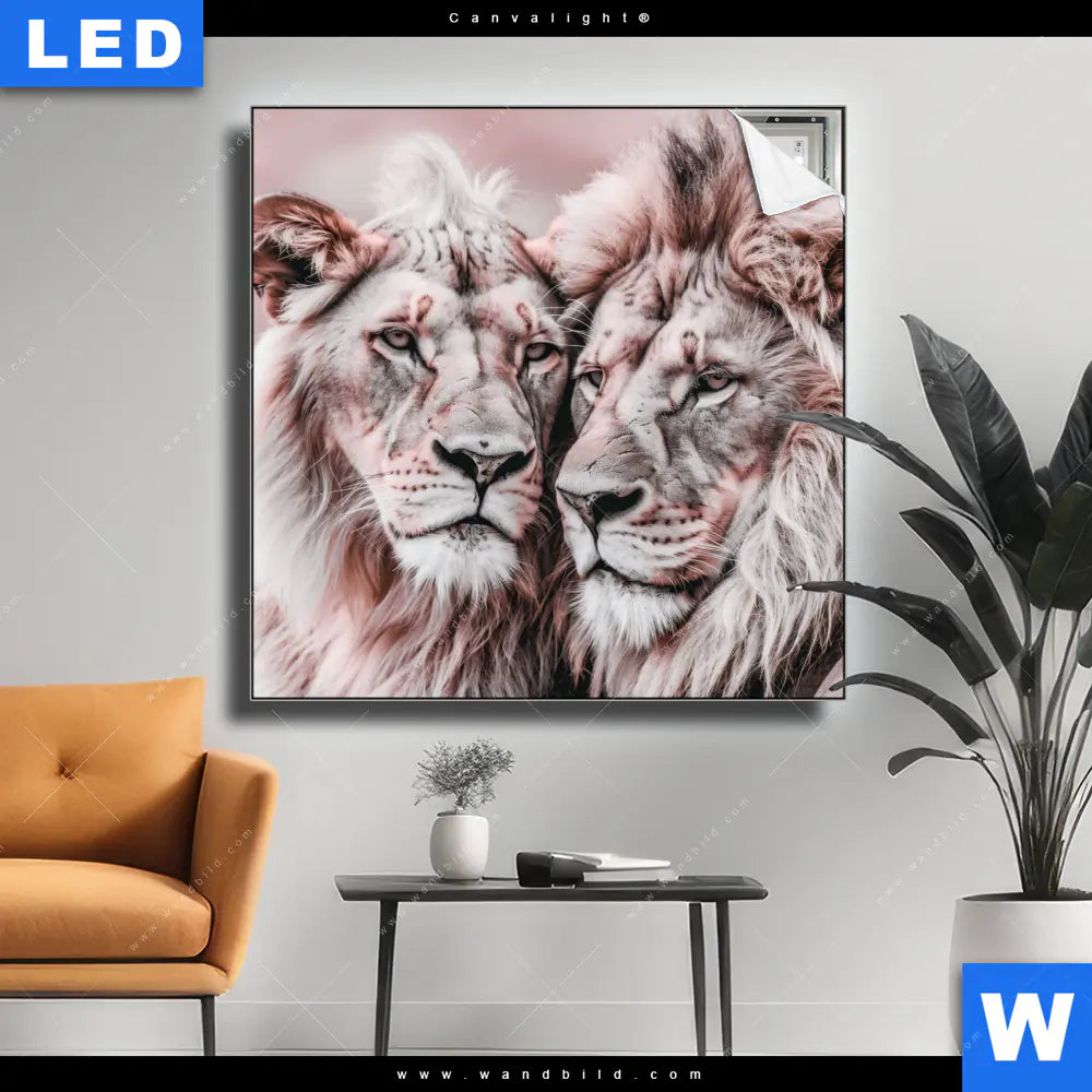 Canvalight® Leuchtbild | Löwen - Harmonie in Pastell | Quadrat