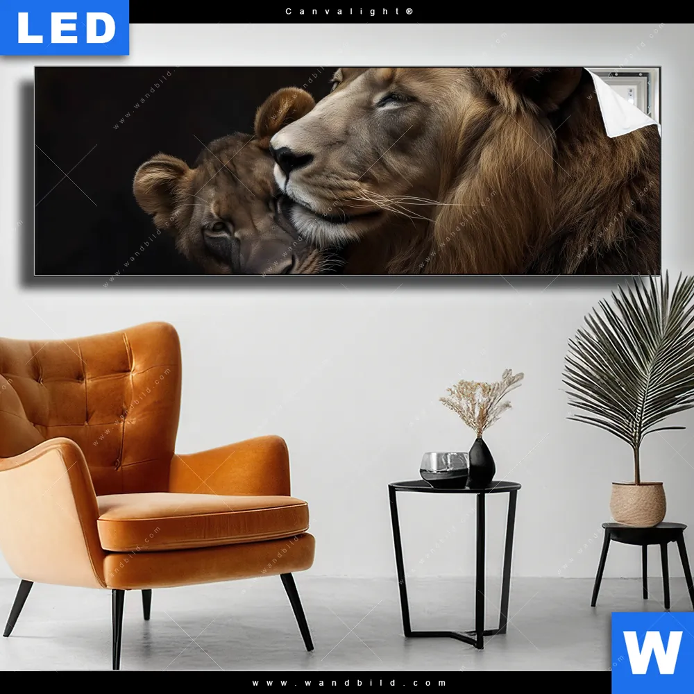 Canvalight® TEX Leuchtbild | Löwen - Stärke und Zärtlichkeit | Panorama