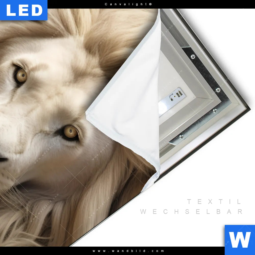Canvalight® TEX Leuchtbild | Löwenkopf mit weißer Mähne | Hochformat