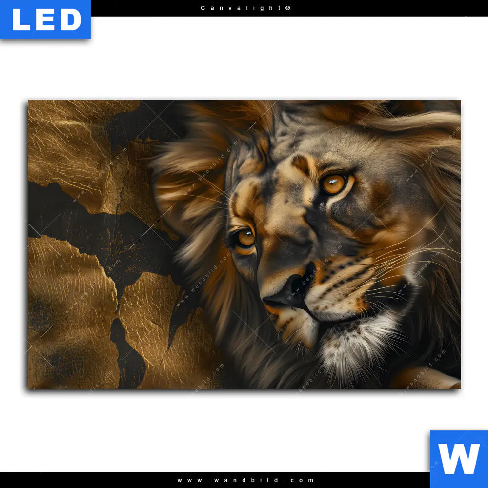 Canvalight® TEX Leuchtbild | Löwenportrait: Kraft und Eleganz | Querformat