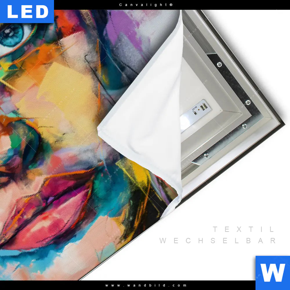 LED-Textilrahmen-Bild mit austauschbarem Porträts - Menschen Textil-Druck (Wechselbild)