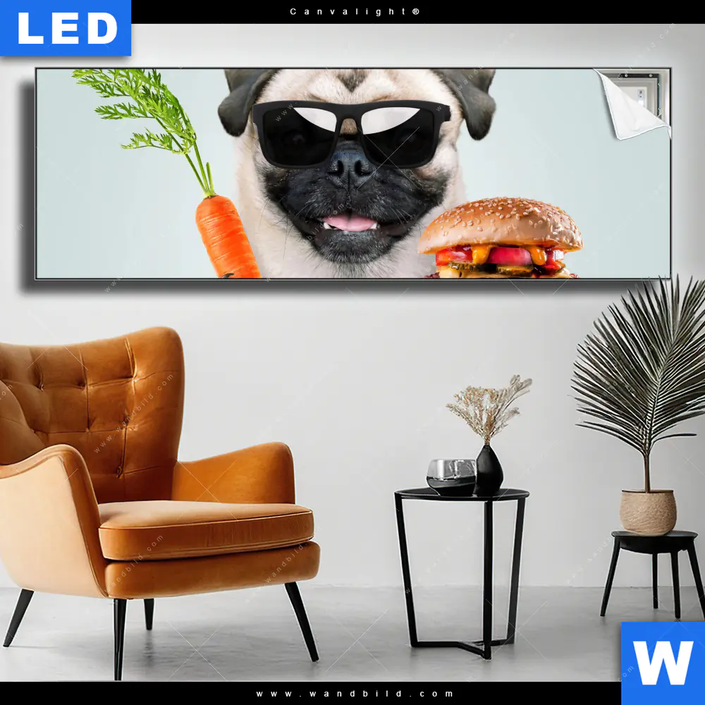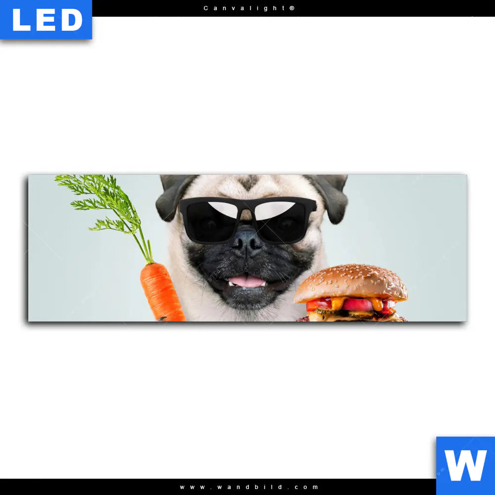 Canvalight® TEX Leuchtbild | Lustiger Hund mit Burger | Panorama