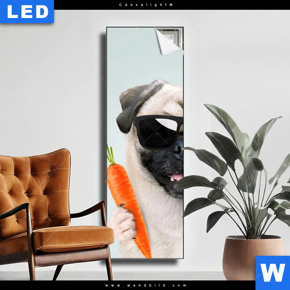 Canvalight® TEX Leuchtbild | Lustiger Hund mit Burger | Schmal
