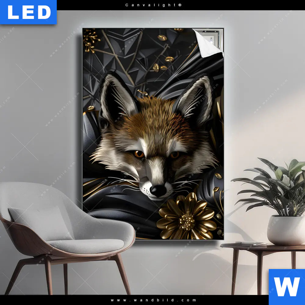 Canvalight® TEX Leuchtbild | Luxuriöser Fuchs mit Blumen | Hochformat