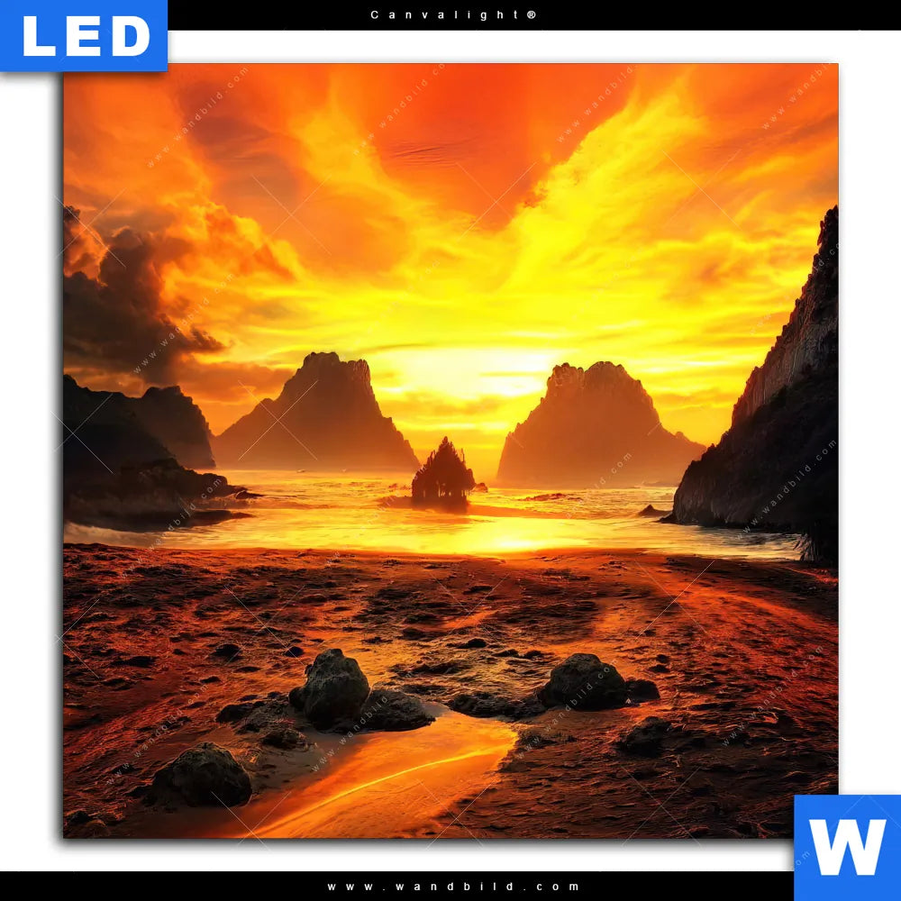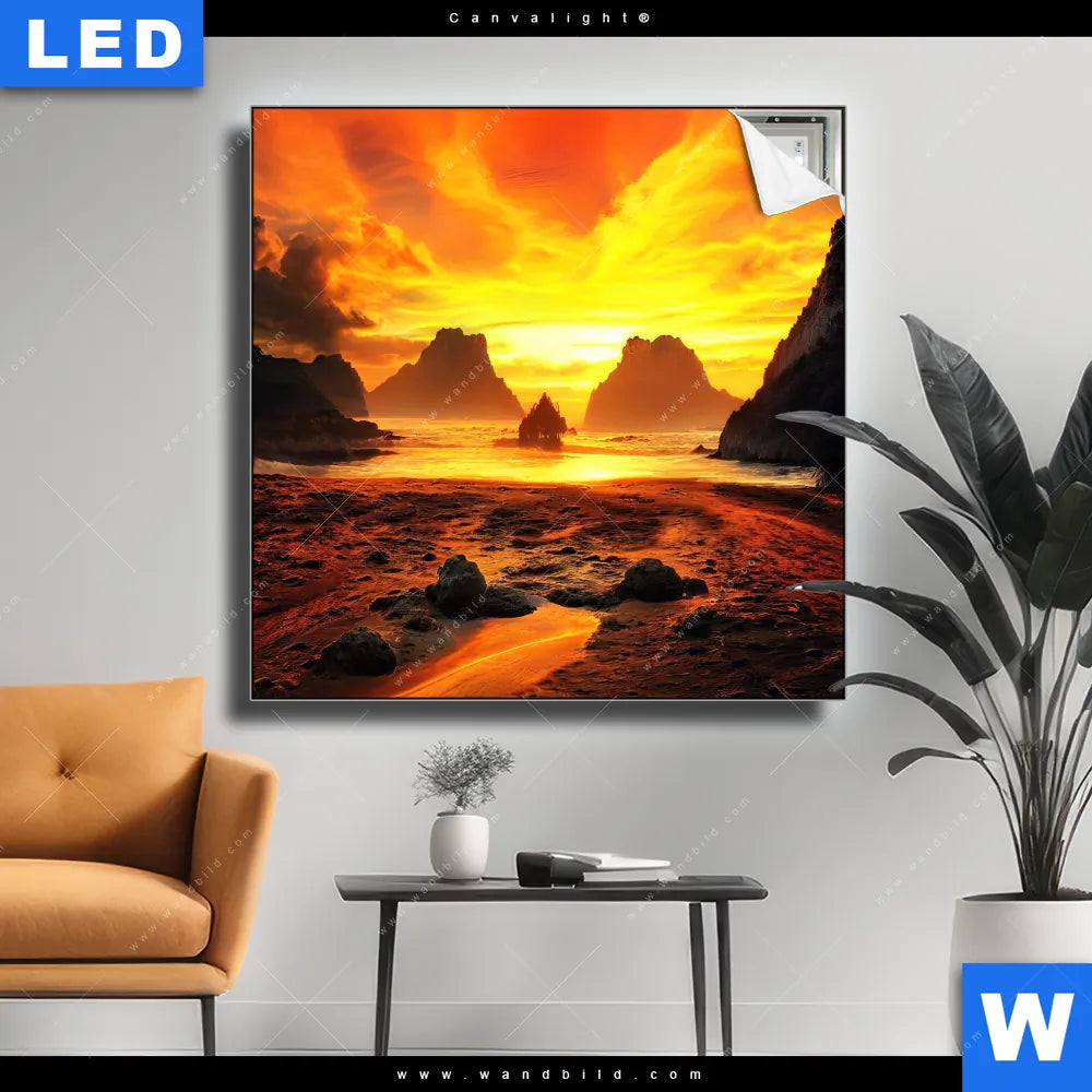 Canvalight® TEX Leuchtbild | Magische Steinlandschaft im Meer | Quadrat