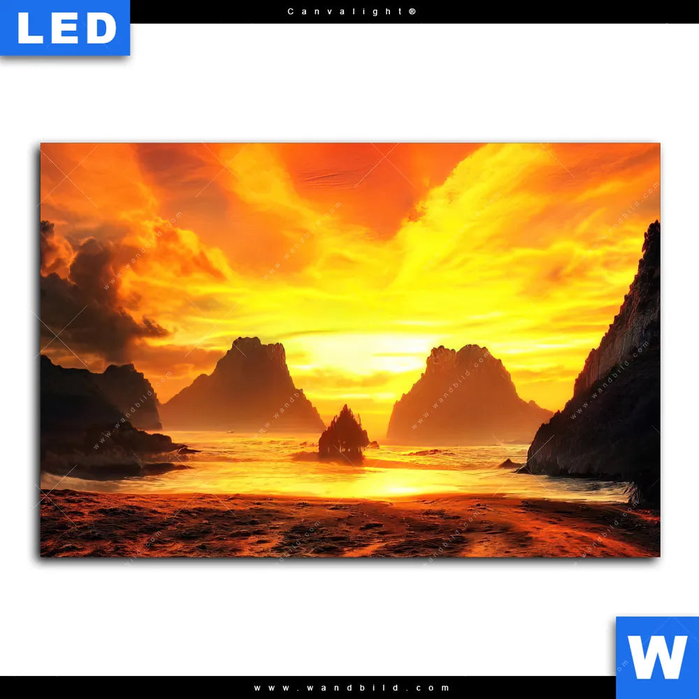 Canvalight® Leuchtbild | Magische Steinlandschaft im Meer | Querformat