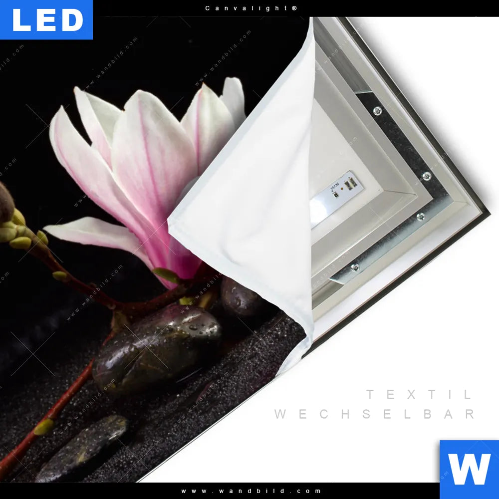 Canvalight® TEX Leuchtbild | Magnolien & Zen Steine | Querformat