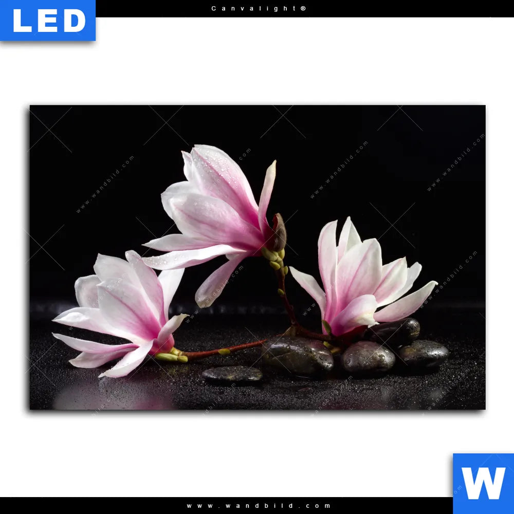 Canvalight® Leuchtbild | Magnolien & Zen Steine | Querformat
