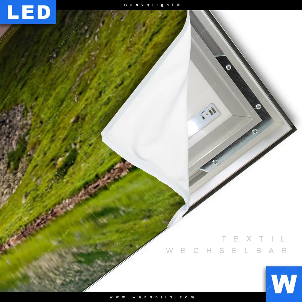 LED-Textilrahmen-Bild mit austauschbarem Landschaften Textil-Druck (Wechselbild)