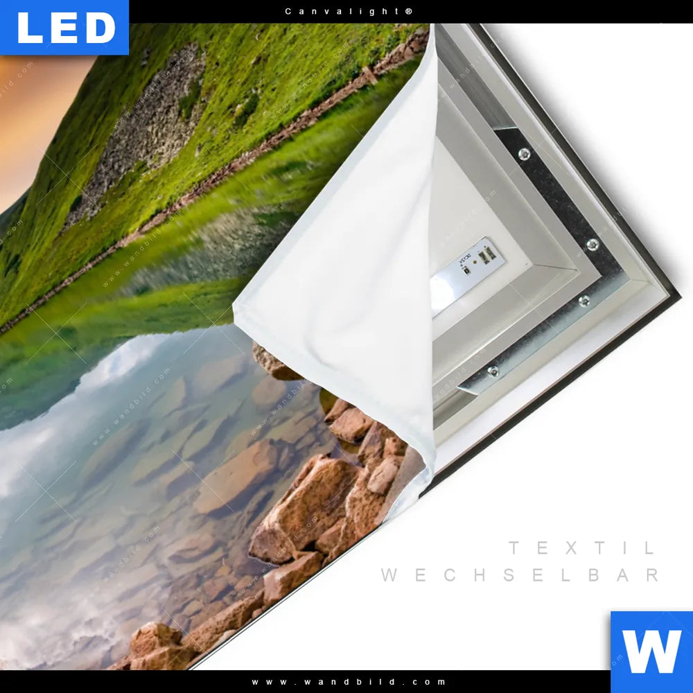 LED-Textilrahmen-Bild mit austauschbarem Landschaften Textil-Druck (Wechselbild)