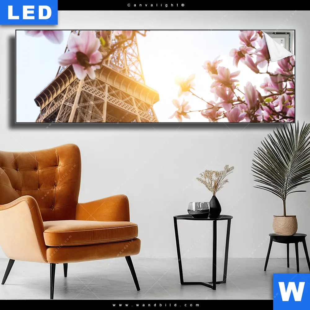 Canvalight® Leuchtbild | Mangnolien in Paris | Panorama