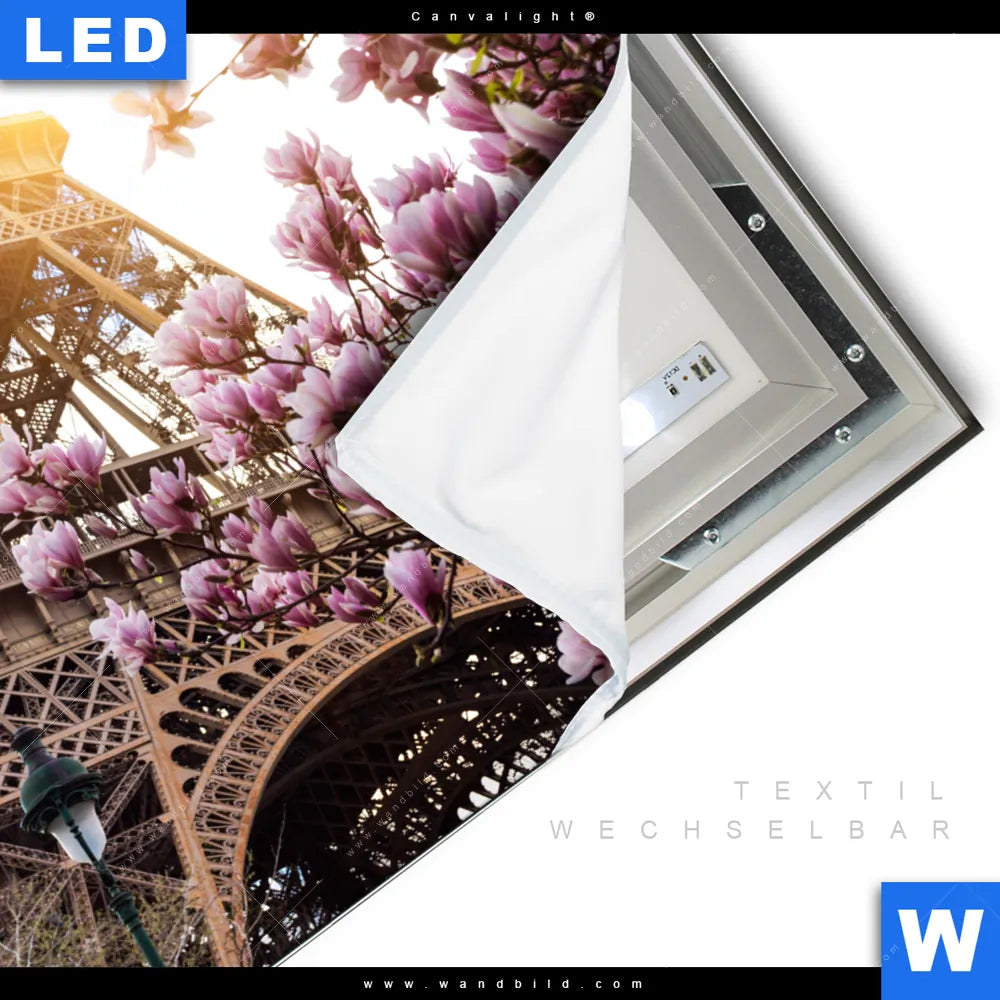 Canvalight® TEX Leuchtbild | Mangnolien in Paris | Quadrat
