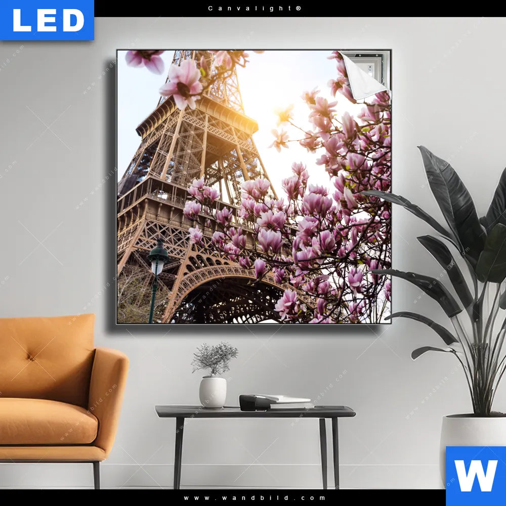 Canvalight® Leuchtbild | Mangnolien in Paris | Quadrat