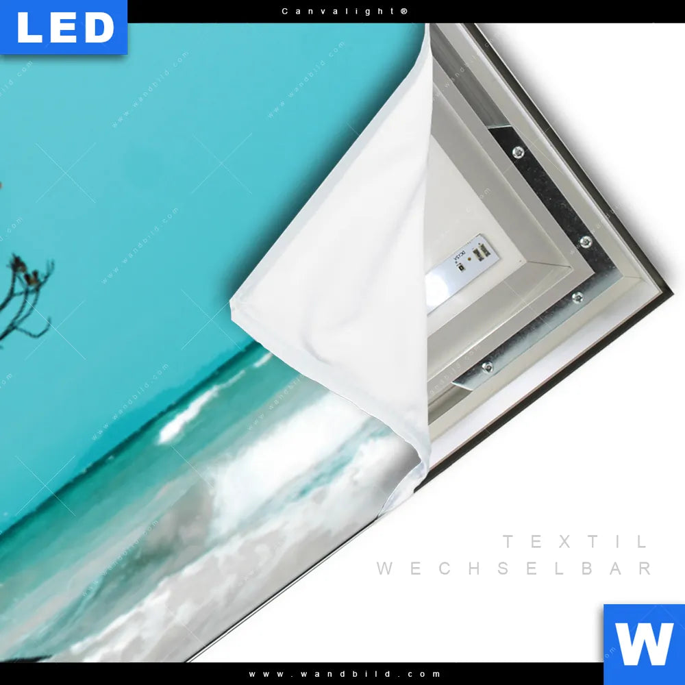 LED-Textilrahmen-Bild mit austauschbarem Strand - Meer, Landschaften Textil-Druck (Wechselbild)