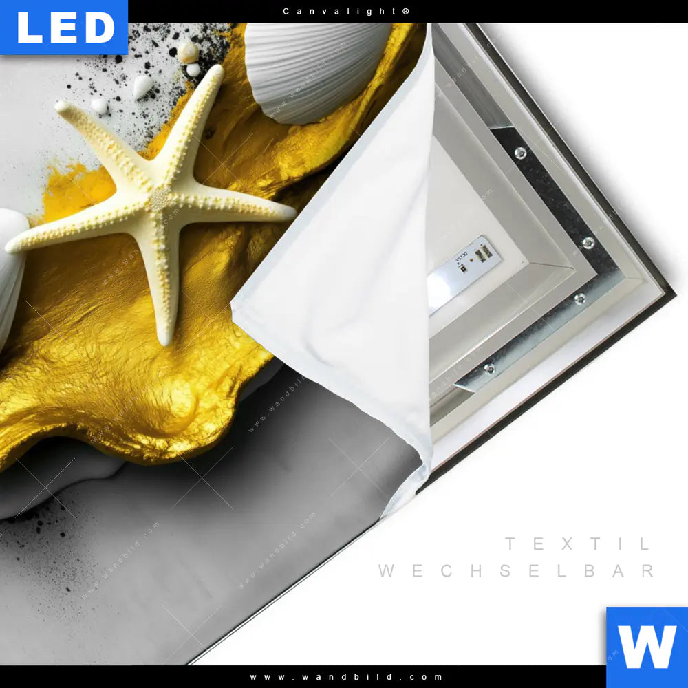Canvalight® TEX Leuchtbild | Maritime Muschel-Kunst | Quadrat