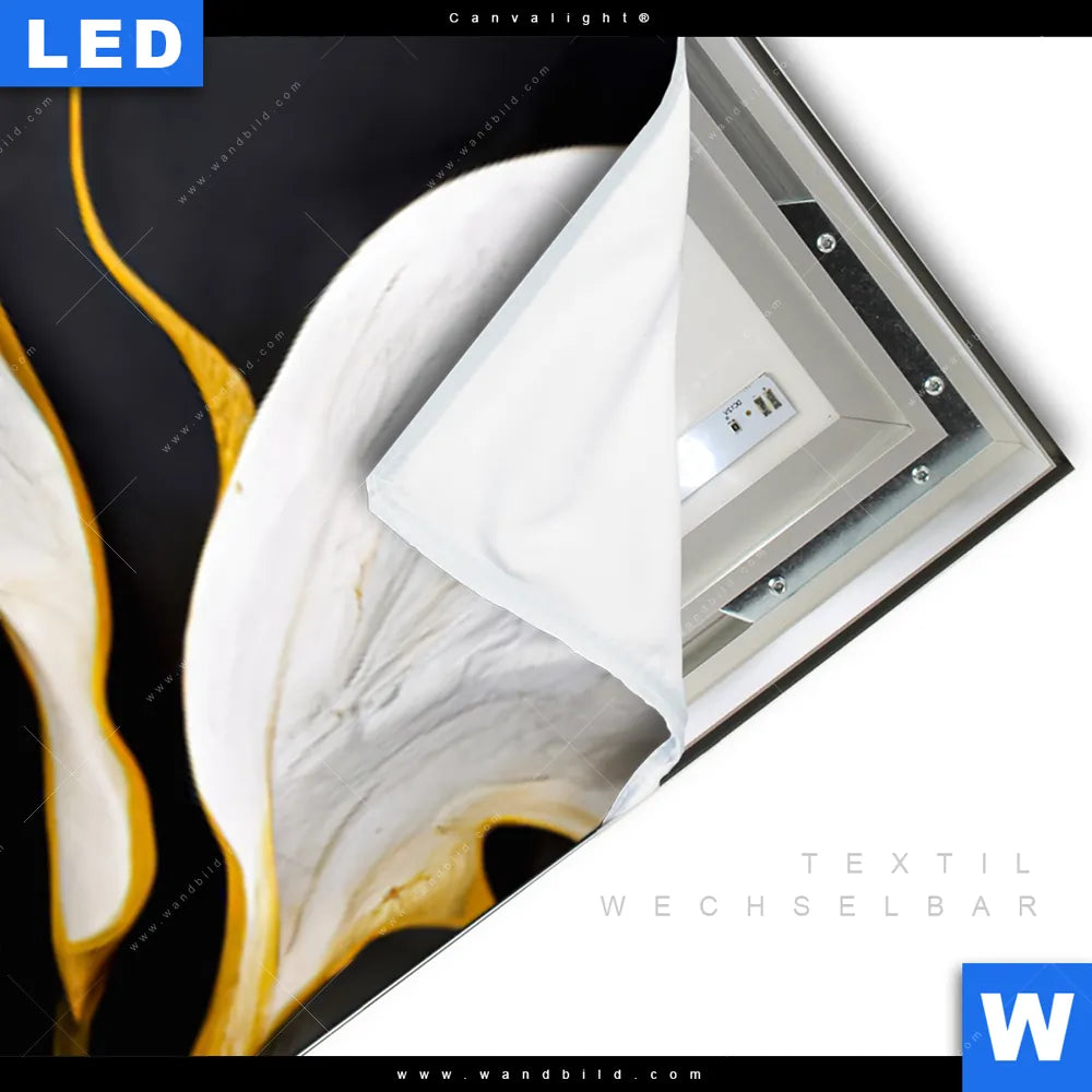Canvalight® TEX Leuchtbild | Marmor Blüten in weiß & gold | Schmal