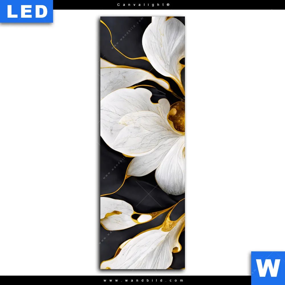 Canvalight® Leuchtbild | Marmor Blüten in weiß & gold | Schmal