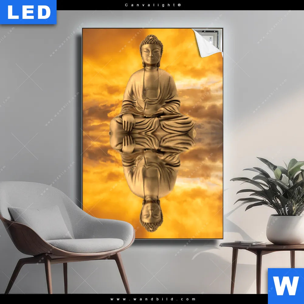 Canvalight® Leuchtbild | Meditierender Buddha am See | Hochformat
