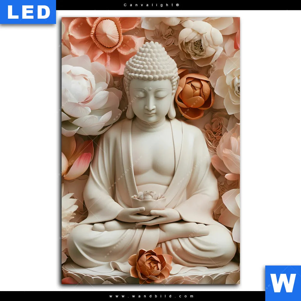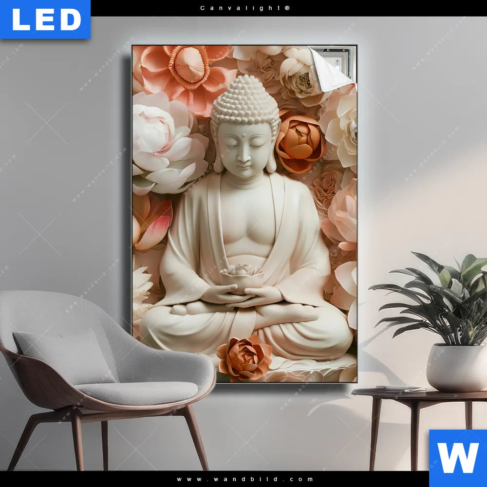 Canvalight® Leuchtbild | Meditierender Buddha mit Blüten | Hochformat