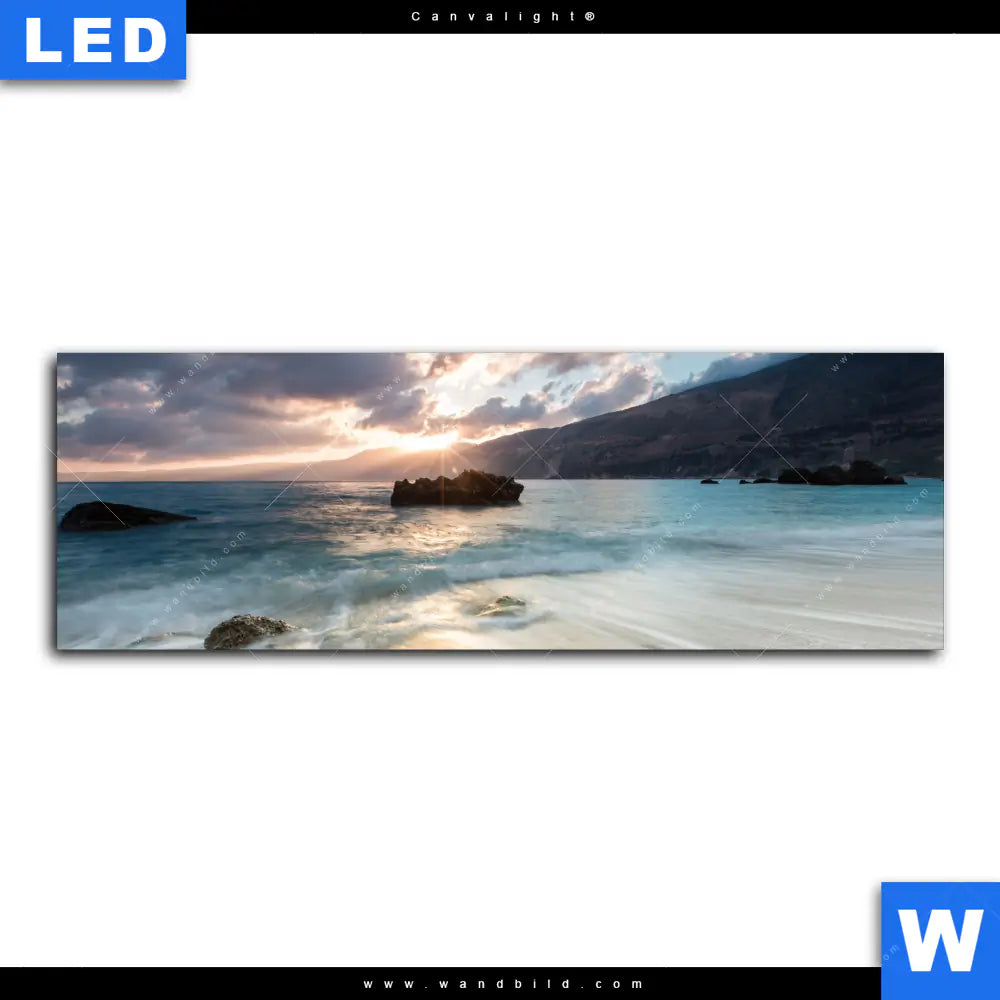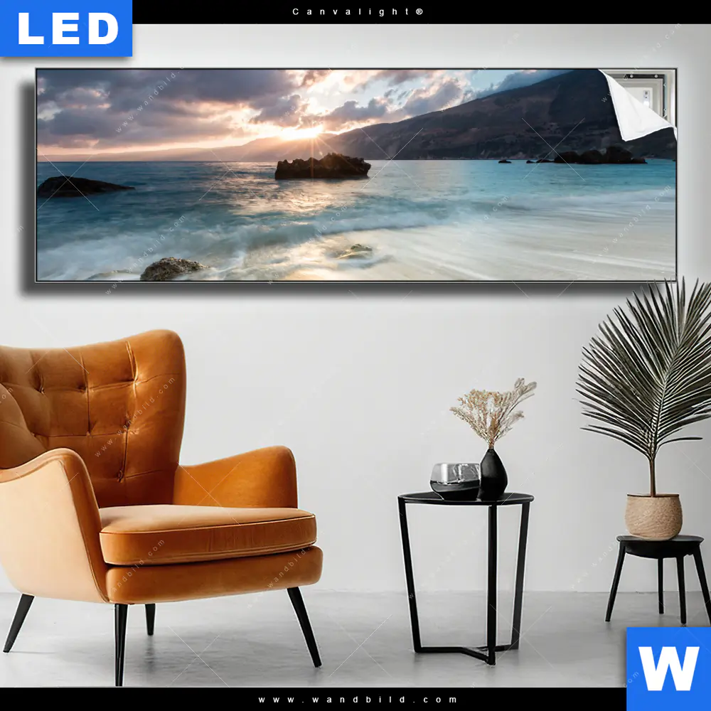 Canvalight® TEX Leuchtbild | Meeresrauschen bei Sonnenuntergang | Panorama