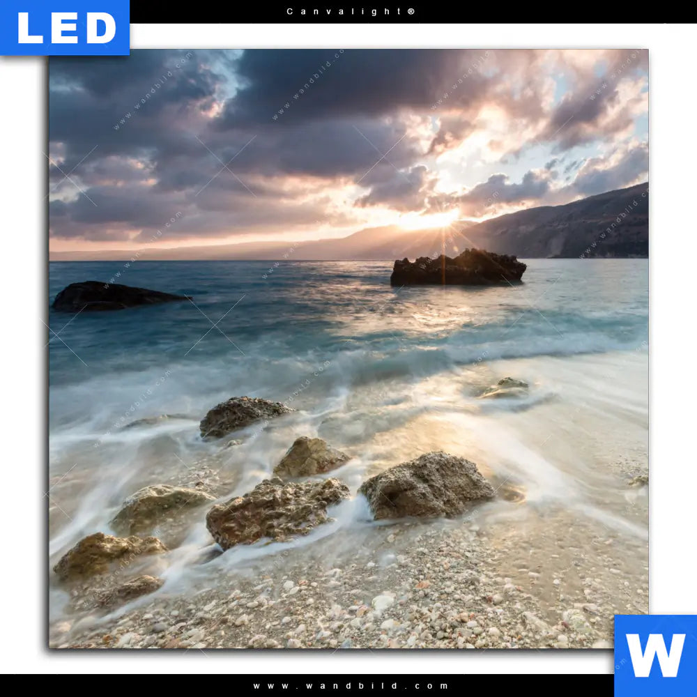 Canvalight® TEX Leuchtbild | Meeresrauschen bei Sonnenuntergang | Quadrat