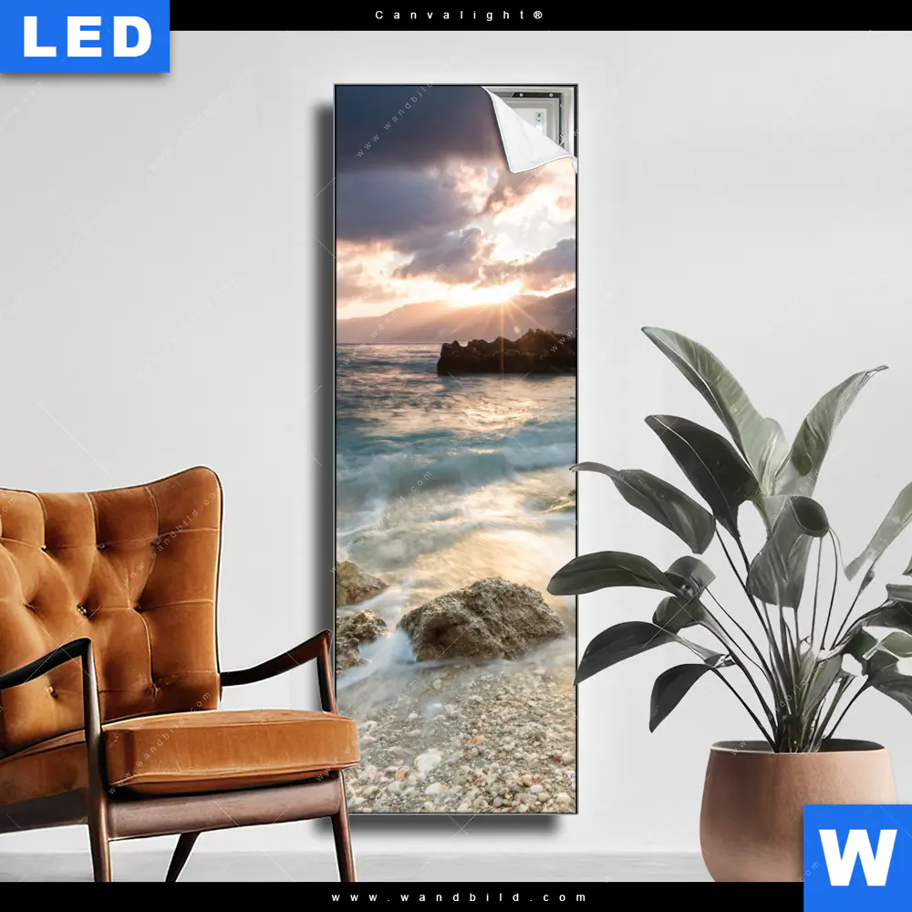 Canvalight® TEX Leuchtbild | Meeresrauschen bei Sonnenuntergang | Schmal