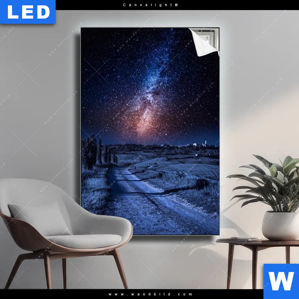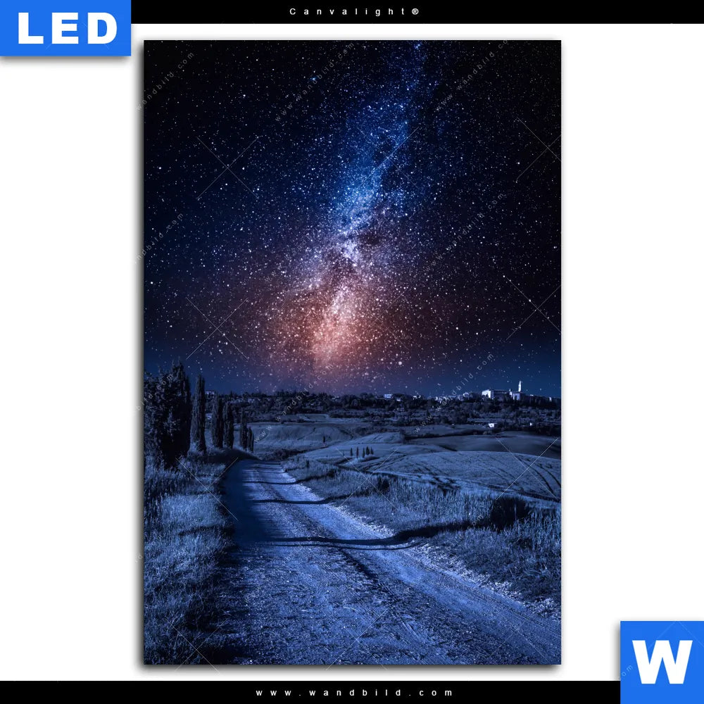 Canvalight® Leuchtbild | Milchstraße über einem Feldweg | Hochformat