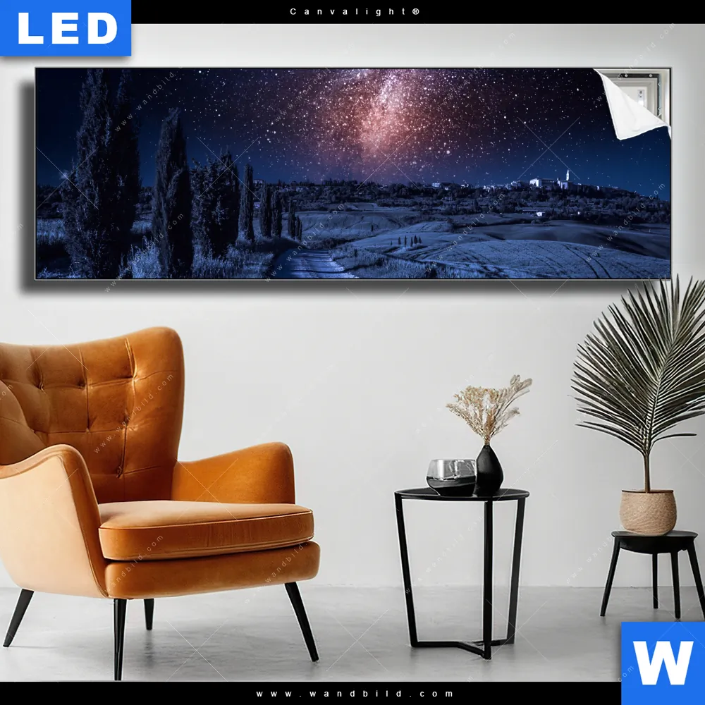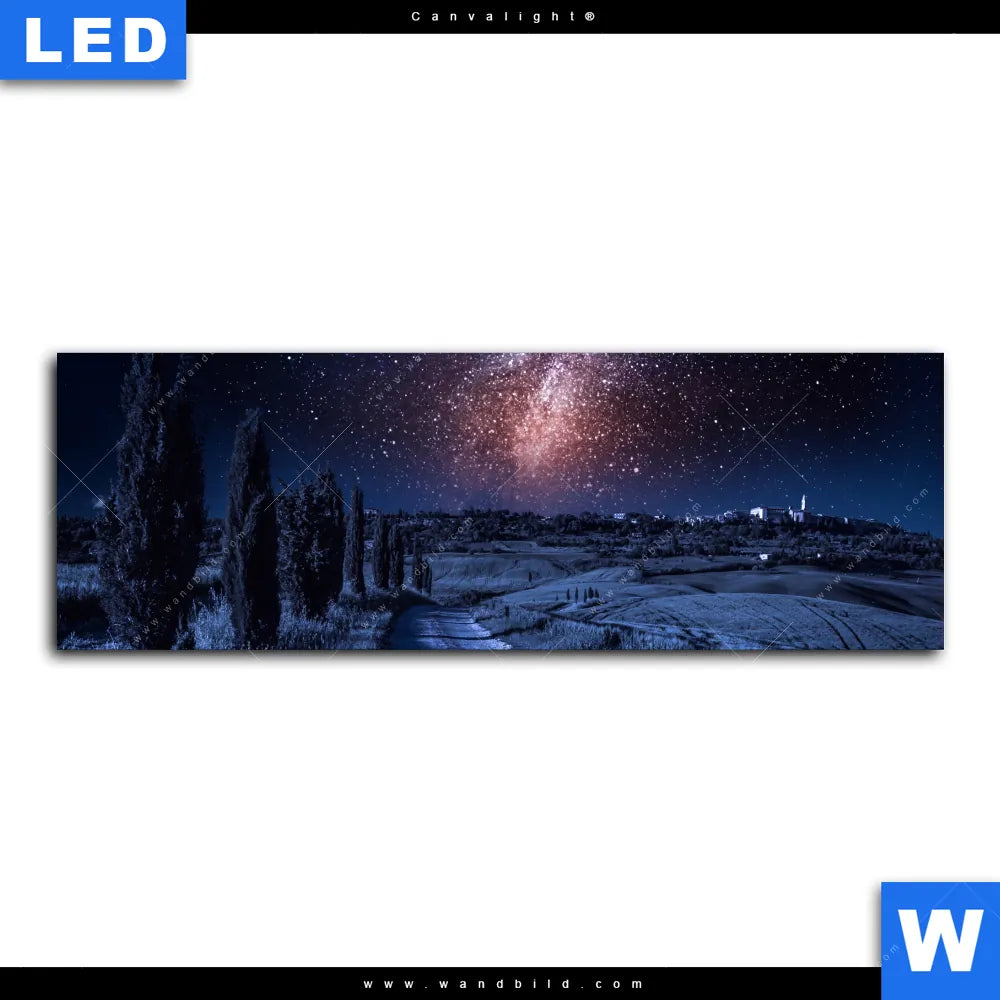 Canvalight® TEX Leuchtbild | Milchstraße über einem Feldweg | Panorama