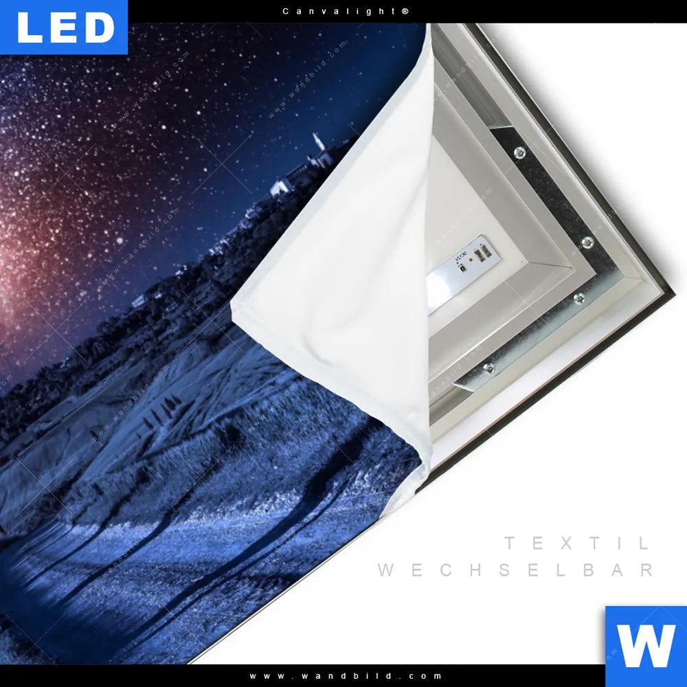 LED-Textilrahmen-Bild mit austauschbarem Landschaften Textil-Druck (Wechselbild)