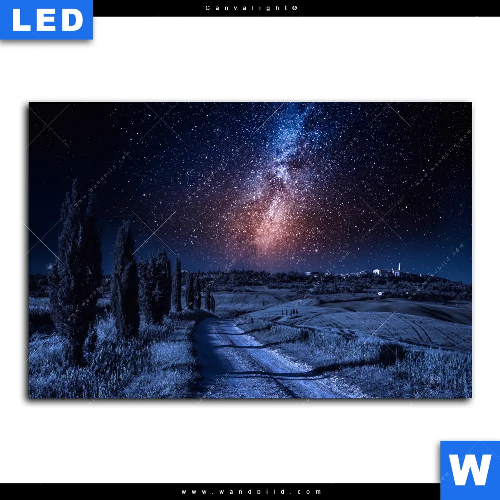 Canvalight® TEX Leuchtbild | Milchstraße über einem Feldweg | Querformat