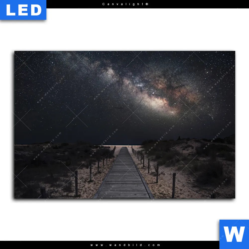 Canvalight® Leuchtbild | Milchstraße über einem Holzweg | Querformat