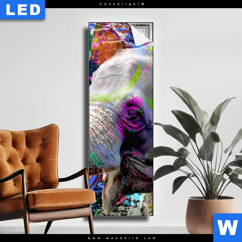 Canvalight® TEX Leuchtbild | Moderner bunter Elefant No. 2 | Schmal