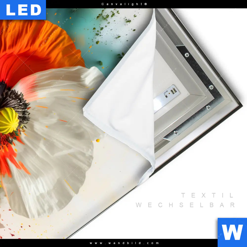 Canvalight® TEX Leuchtbild | Mohnblume im Farbnebel | Hochformat