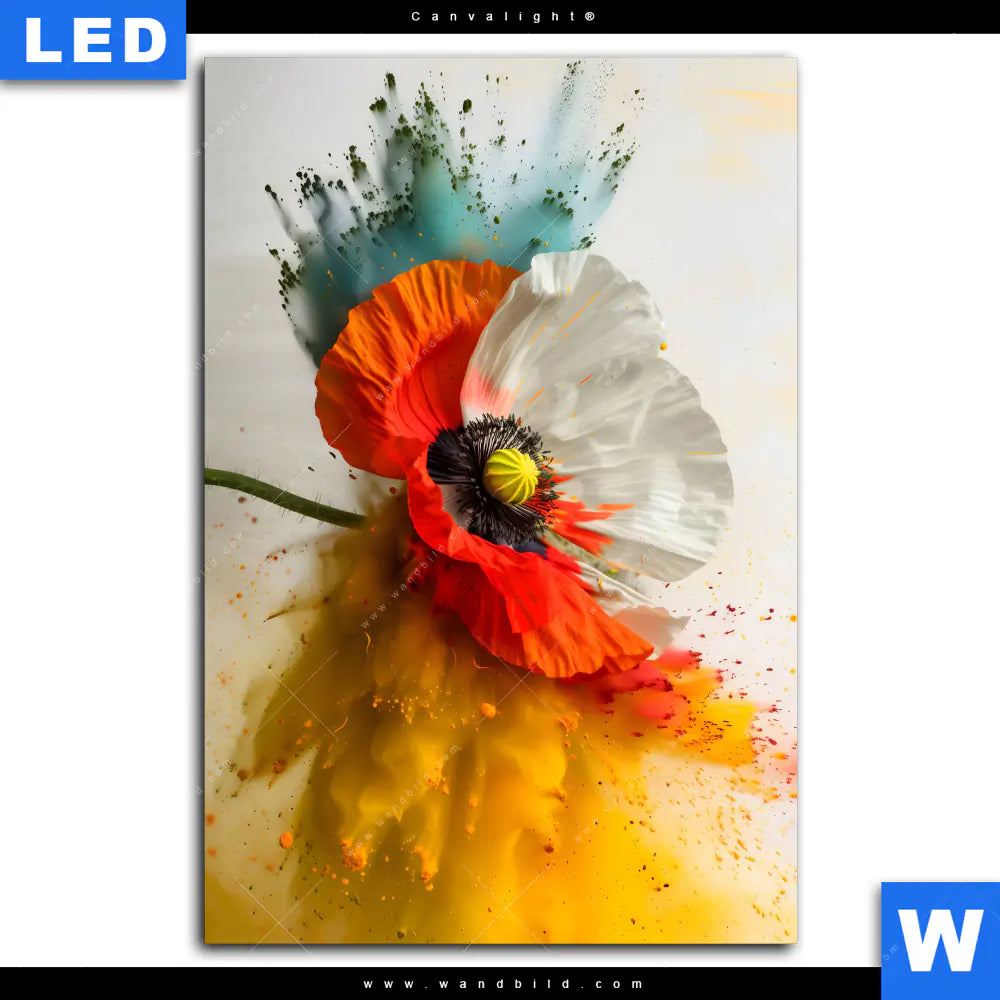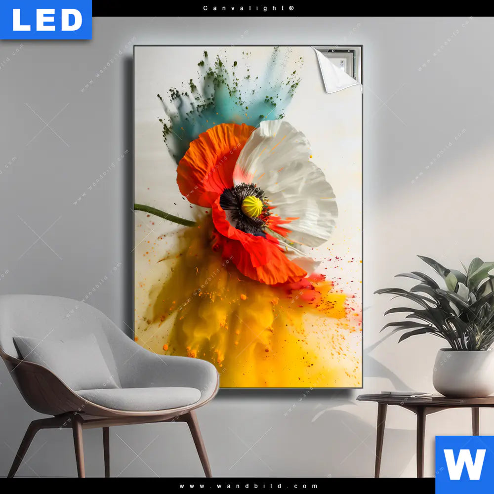 Canvalight® Leuchtbild | Mohnblume im Farbnebel | Hochformat