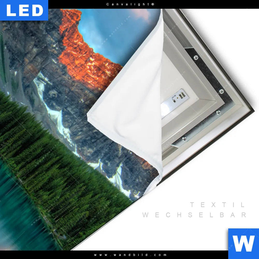 LED-Textilrahmen-Bild mit austauschbarem Landschaften Textil-Druck (Wechselbild)