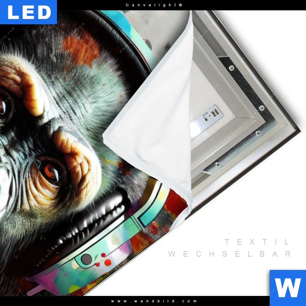 Canvalight® TEX Leuchtbild | Musikalischer Affe | Hochformat