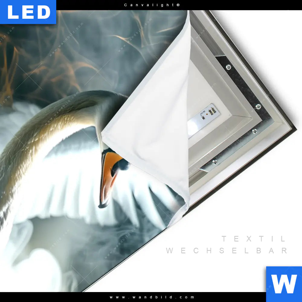Canvalight® TEX Leuchtbild | Mystischer Schwan im Nebel | Hochformat
