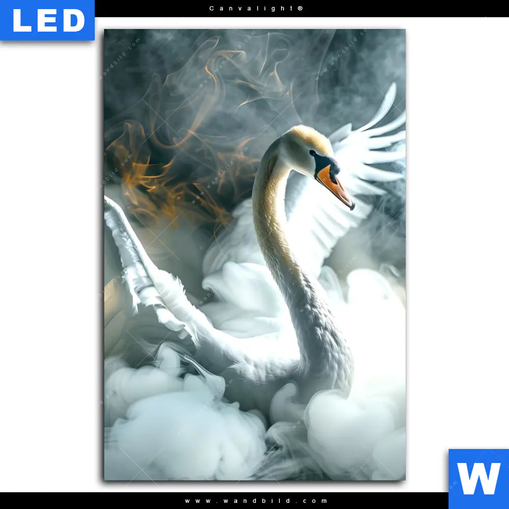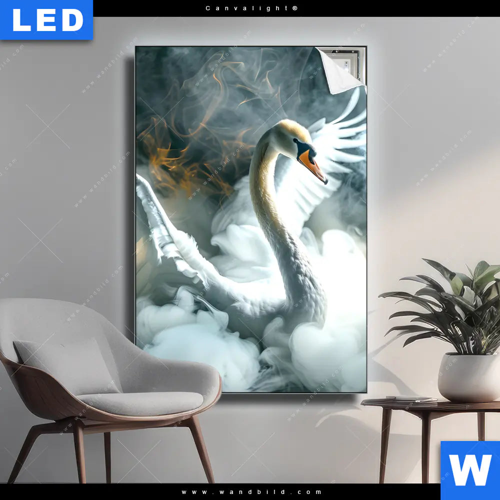 Canvalight® Leuchtbild | Mystischer Schwan im Nebel | Hochformat