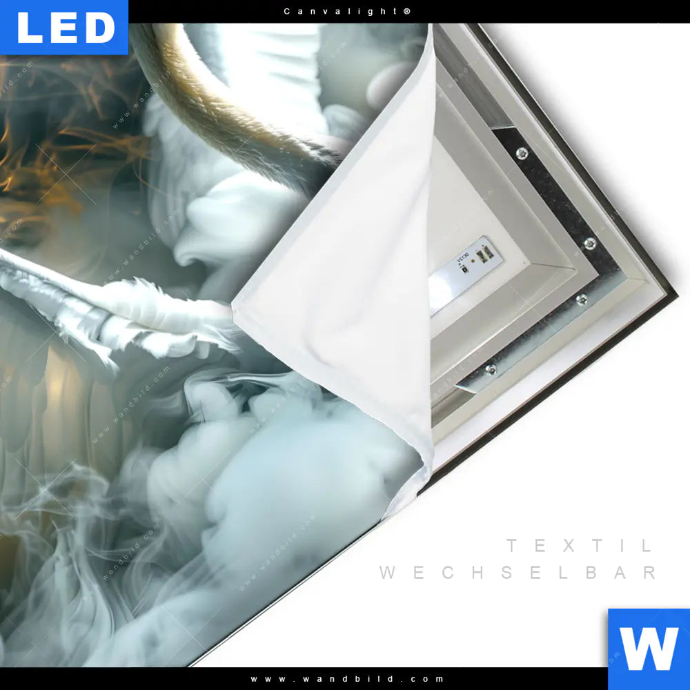 Canvalight® TEX Leuchtbild | Mystischer Schwan im Nebel | Quadrat