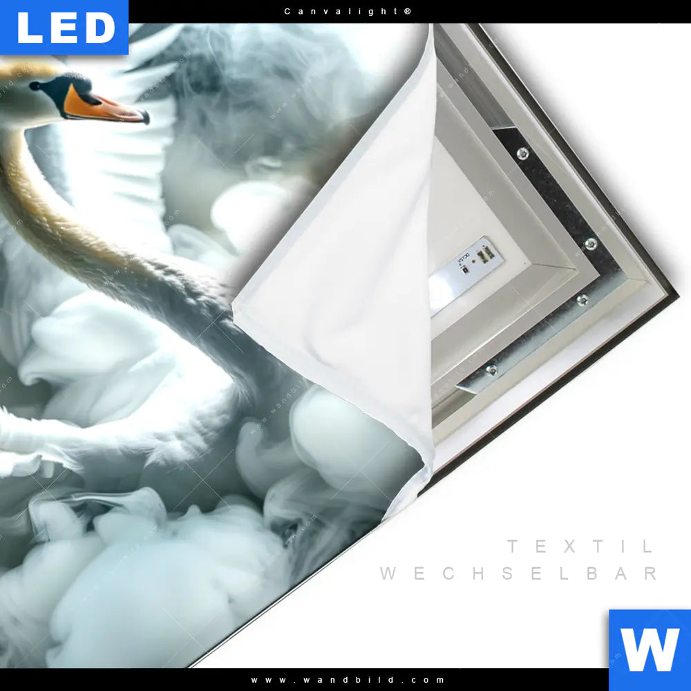 Canvalight® TEX Leuchtbild | Mystischer Schwan im Nebel | Querformat