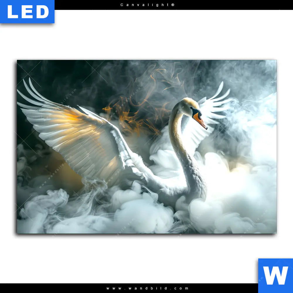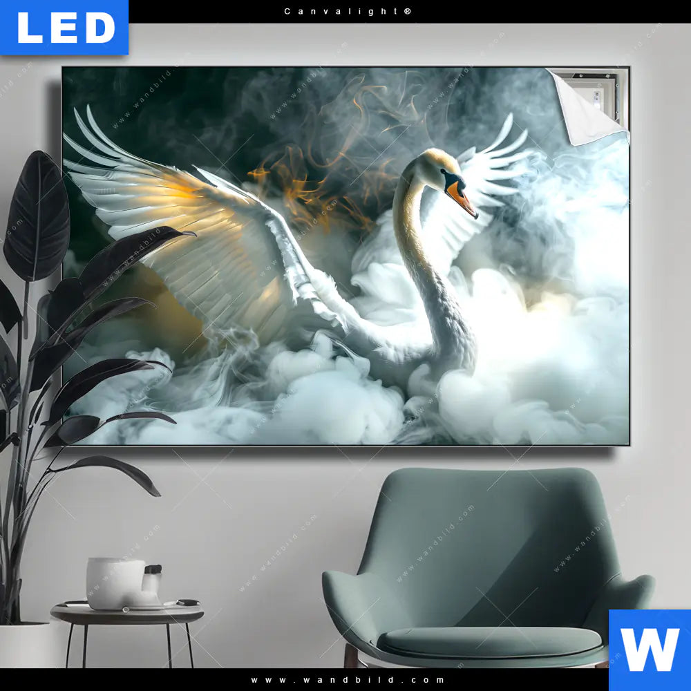 Canvalight® Leuchtbild | Mystischer Schwan im Nebel | Querformat