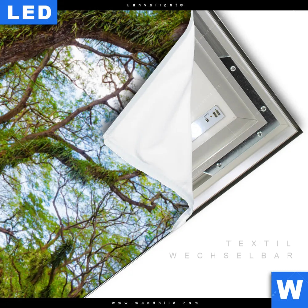 LED-Textilrahmen-Bild mit austauschbarem Wald - Bäume, Landschaften Textil-Druck (Wechselbild)