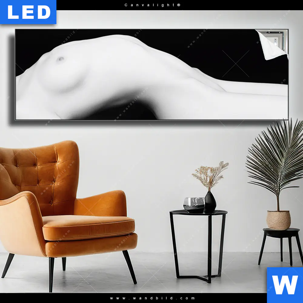 Canvalight® TEX Leuchtbild | Nacktheit in Schwarzweiß | Panorama