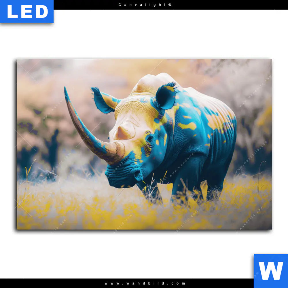 Canvalight® TEX Leuchtbild | Nashorn - Farben der Wildness | Querformat