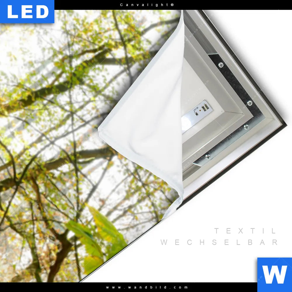 LED-Textilrahmen-Bild mit austauschbarem Landschaften, Wald - Bäume Textil-Druck (Wechselbild)