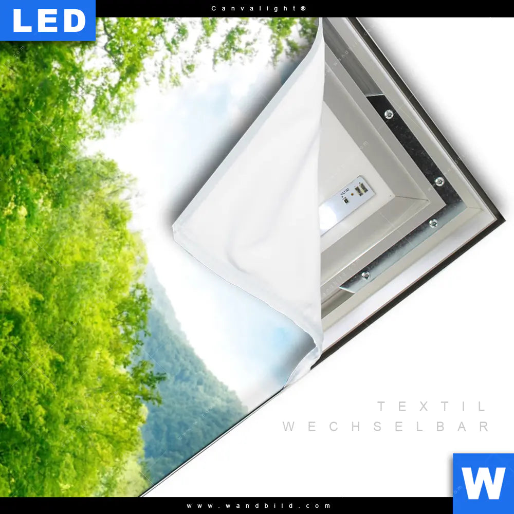 LED-Textilrahmen-Bild mit austauschbarem Landschaften Textil-Druck (Wechselbild)