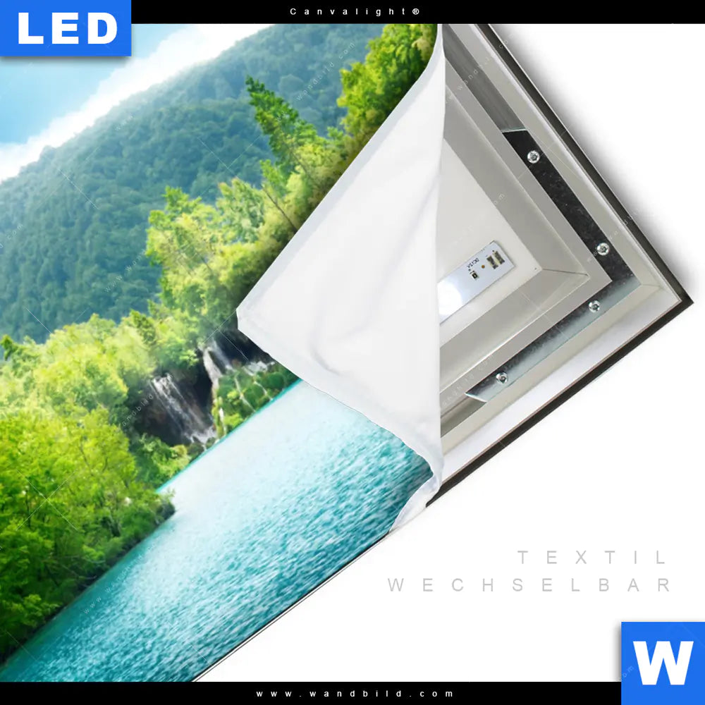 LED-Textilrahmen-Bild mit austauschbarem Landschaften Textil-Druck (Wechselbild)