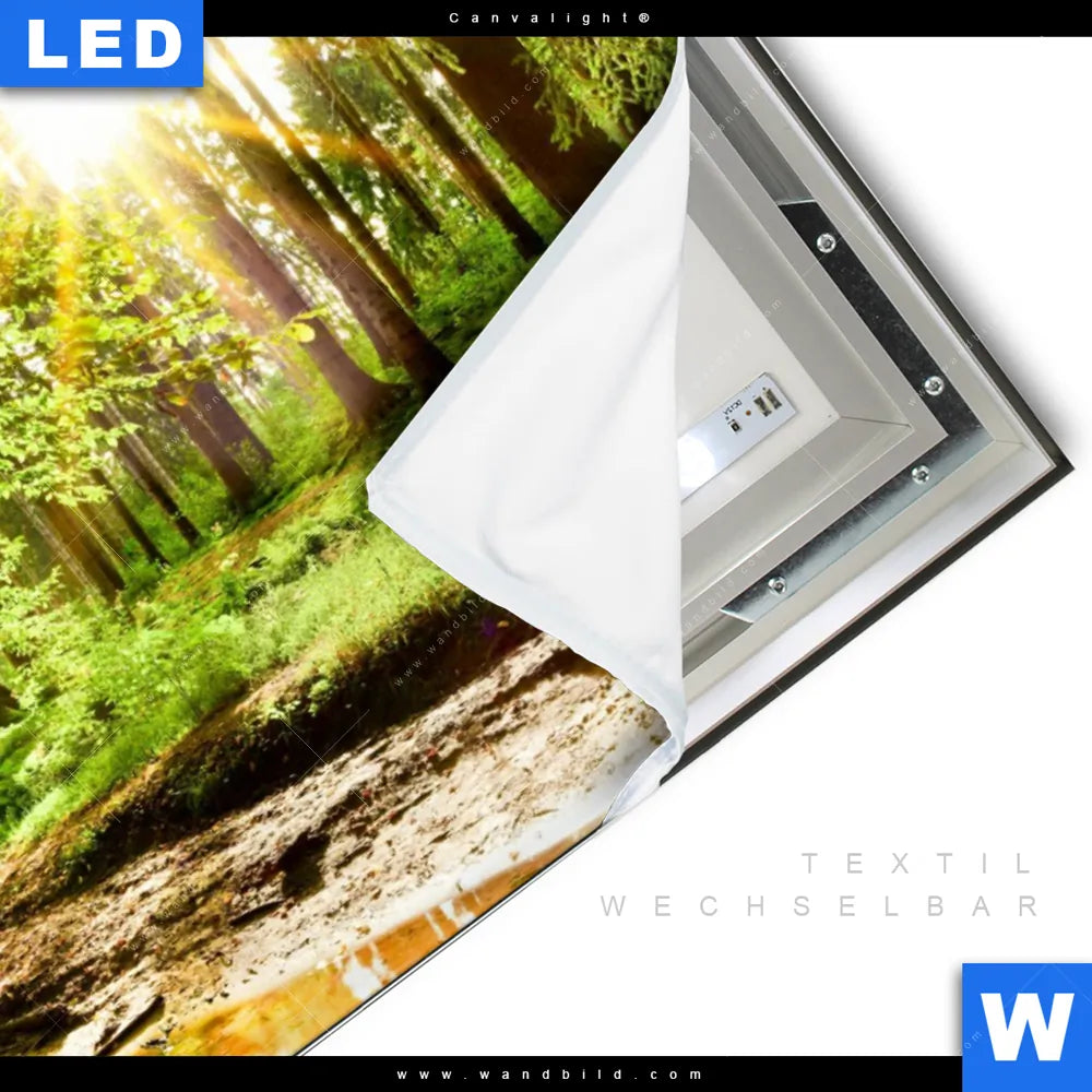 LED-Textilrahmen-Bild mit austauschbarem Landschaften, Wald - Bäume Textil-Druck (Wechselbild)
