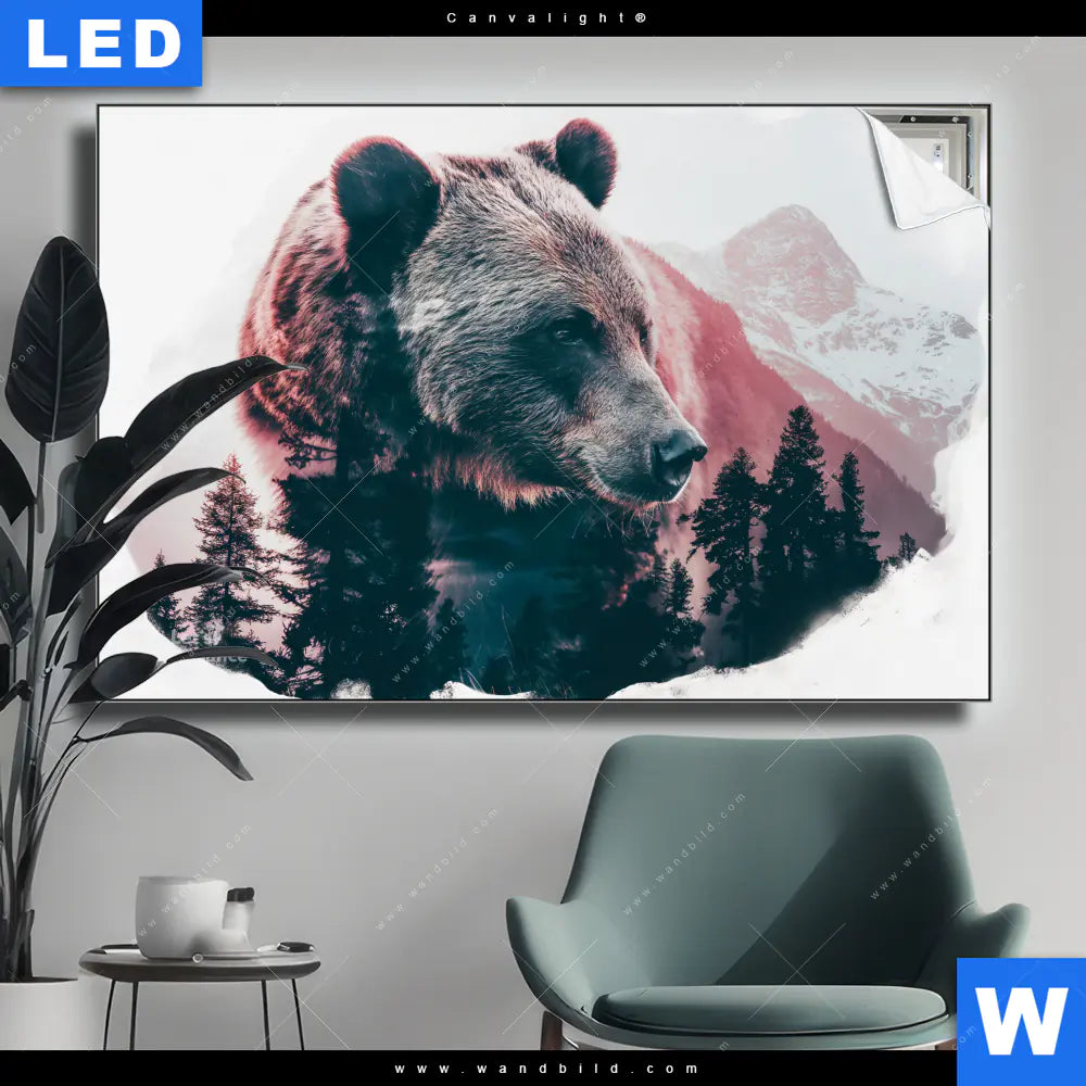 Canvalight® Leuchtbild | Natur und Braunbär | Querformat