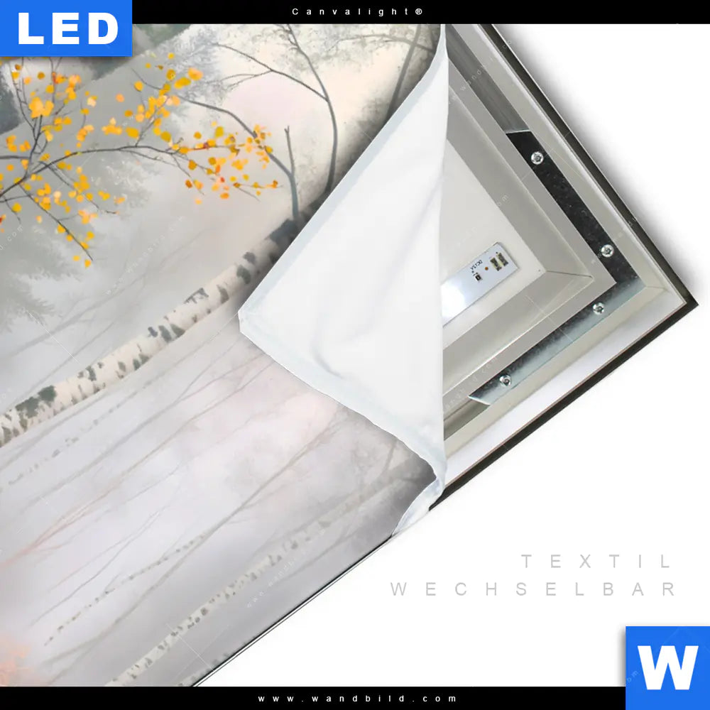 LED-Textilrahmen-Bild mit austauschbarem Landschaften, Wald - Bäume Textil-Druck (Wechselbild)
